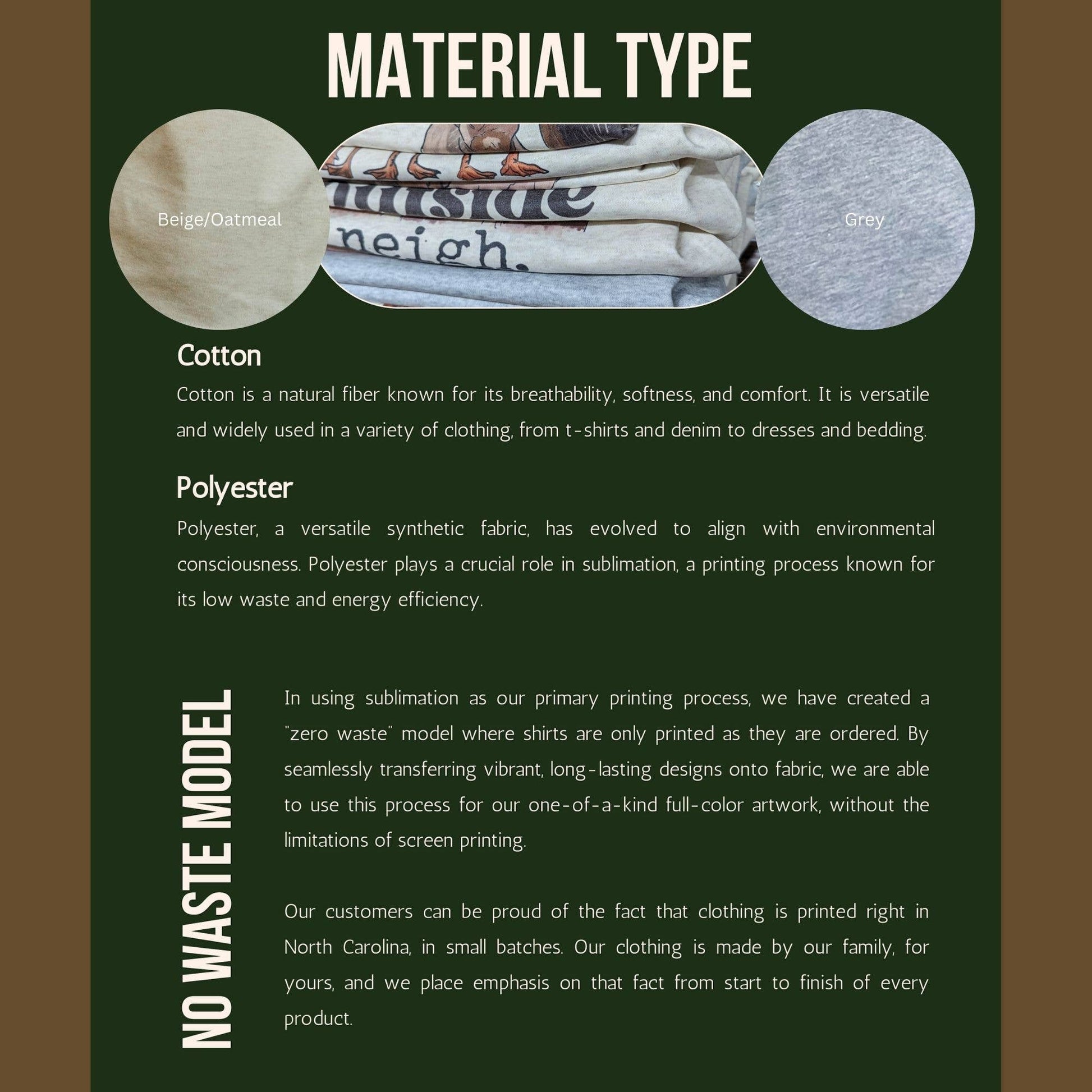 - Our clothing is hand-printed in small batches in our shop right in Western North Carolina.