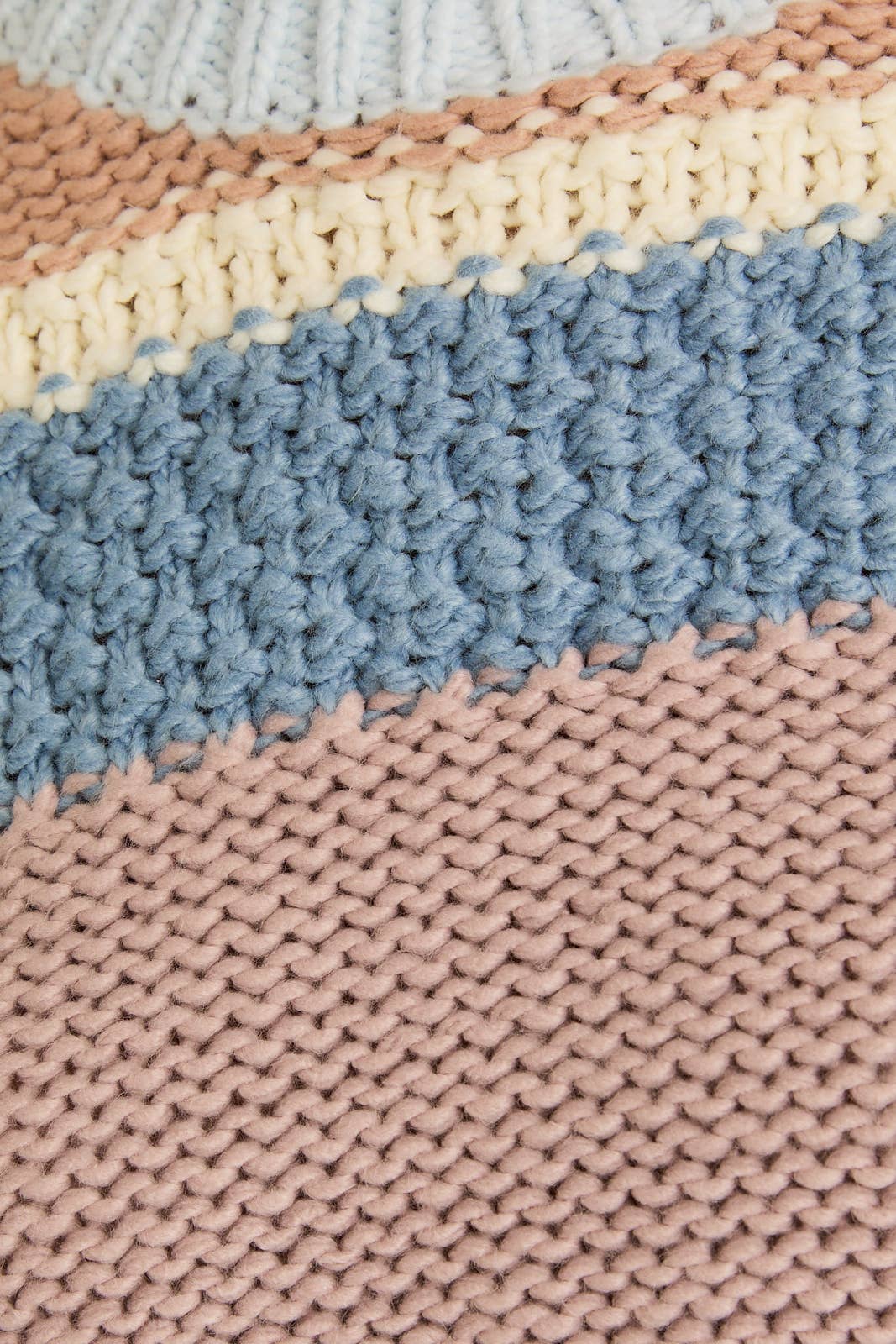 Softly textured and effortlessly chic, this light blue striped sweater top brings breezy sophistication to your wardrobe. Designed with a graceful boat neckline and delicate openwork knit, it strikes the perfect balance between casual comfort and refined style. The airy pattern and soft hues evoke a coastal feel, making it ideal for layering over tanks or pairing with denim for relaxed, polished looks.